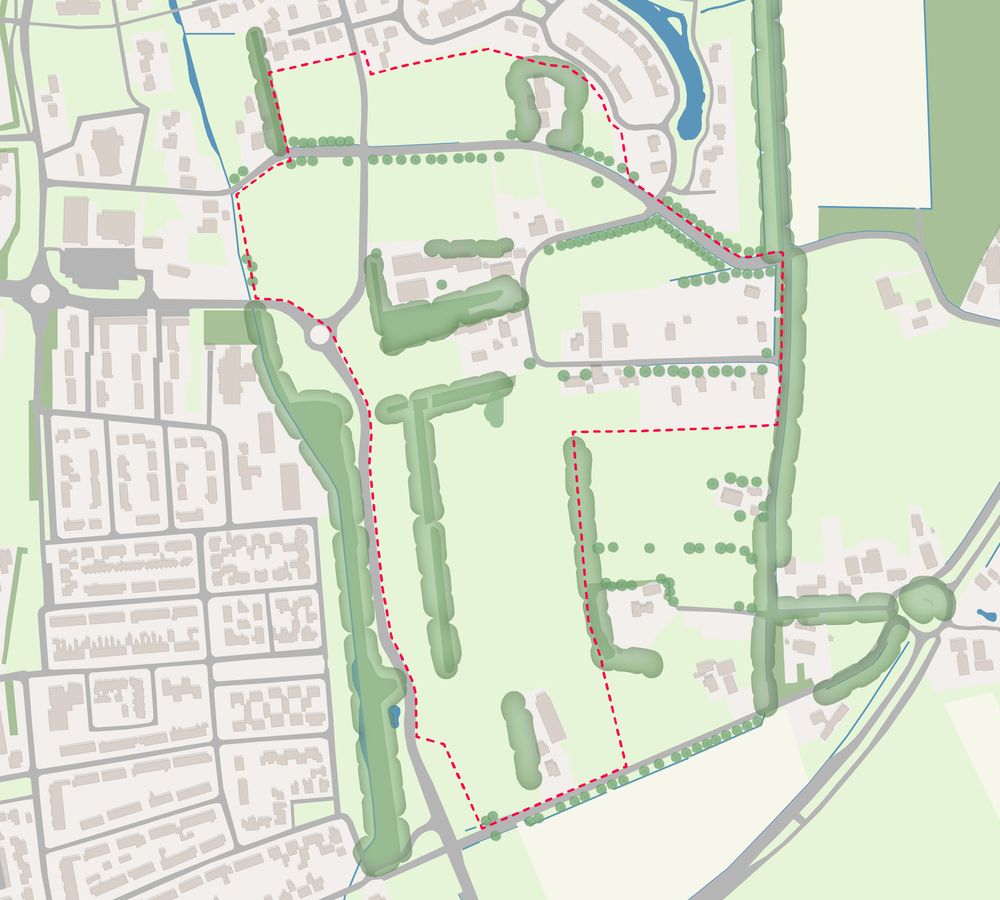 De grenzen van het plangebied voor de nieuwe woonwijk.